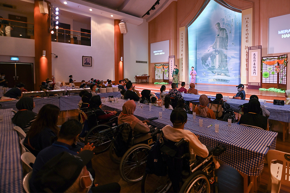 Tzu-Chi Foundation (Singapore) holds the Hari Raya Celebration annually to celebrate the festive season and distribute aid materials to Malay care recipients every year. However, the celebration had been held online for the past three years due to the pandemic. On 30 April 2023, the weekend after Hari Raya Aidilfitri, Tzu Chi volunteers held the Hari Raya celebration event at Jing Si Hall and invited their Malay care recipients to celebrate the festival together.