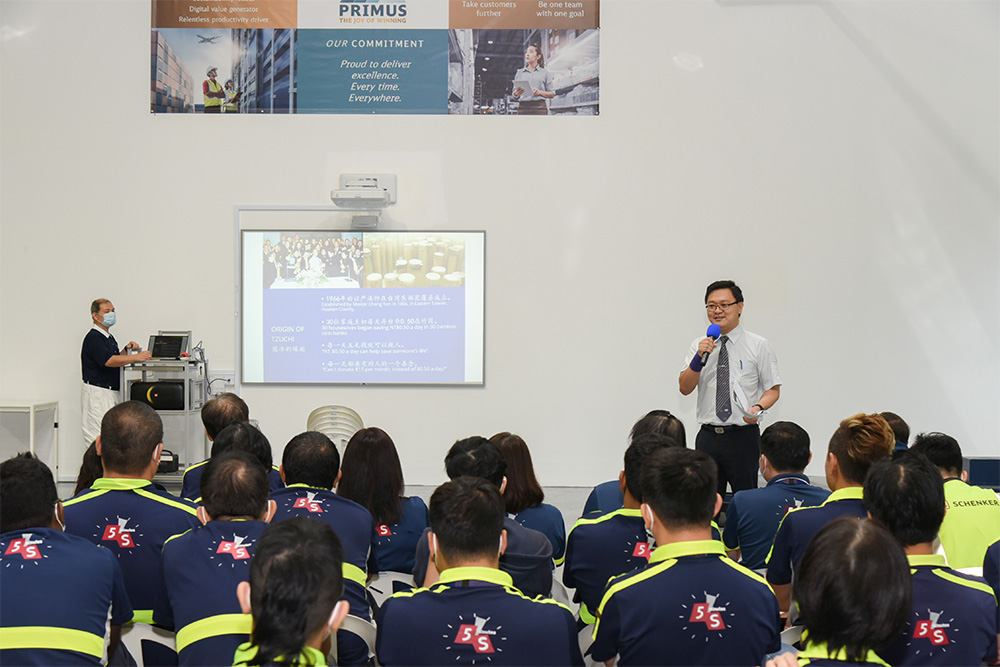 More than 20 Tzu Chi volunteers have conscientiously prepared for this CSR activity in collaboration with DB Schenker. Volunteer Lim Chee Wah is seen sharing Tzu Chi’s story with 60 DB Schenker employees, with another 60 attending virtually.