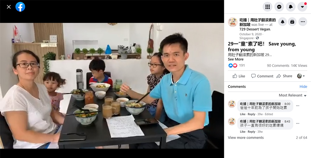 The motivation behind primary school teacher Low Yee Leong’s path to vegetarianism for the past ten years was to wish for his wife’s smooth delivery. He had been practicing “flexitarianism” at home until his three kids started attending schools that provide plant-based meals. It then started a whole new chapter for his family of five to go vegetarian.