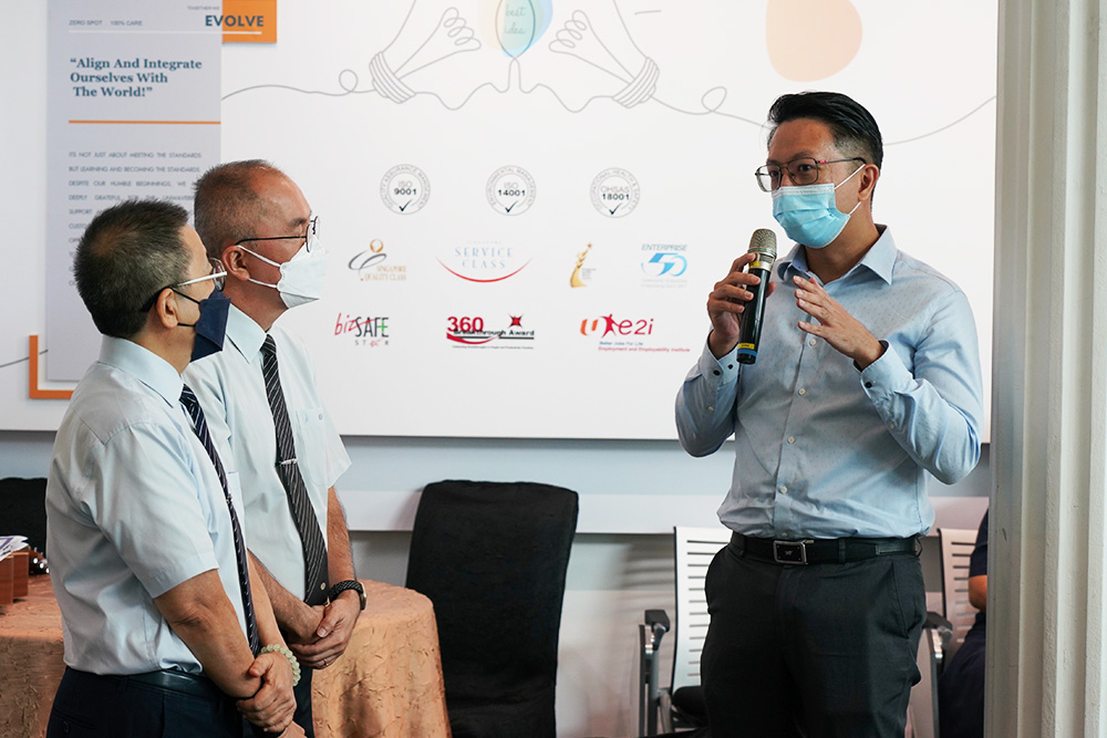 During the Q & A session, volunteers Keng Lim (left) and Andrew Lim (centre) patiently address any questions from the floor of distinguished guests and company employees.