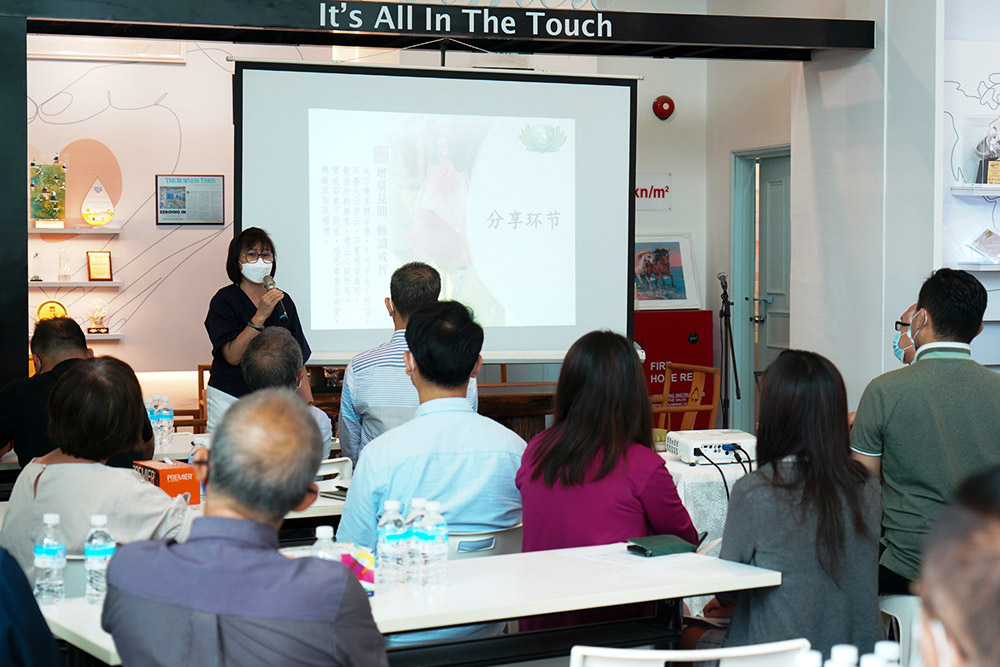 On 7 June 2022, the Tzu Chi Singapore Entrepreneur Team revisited Zero Spot to share about environmental and ecological protection and Tzu Chi's footprints of Great Love with the invited entrepreneurs and company employees. Chen Yi, a senior financial staff member who has worked there for more than ten years, greeted Tzu Chi volunteers warmly in a temporarily arranged lecture hall in the company's lobby. She said, "Tzu Chi volunteers come here often. We all know each other and are good friends."