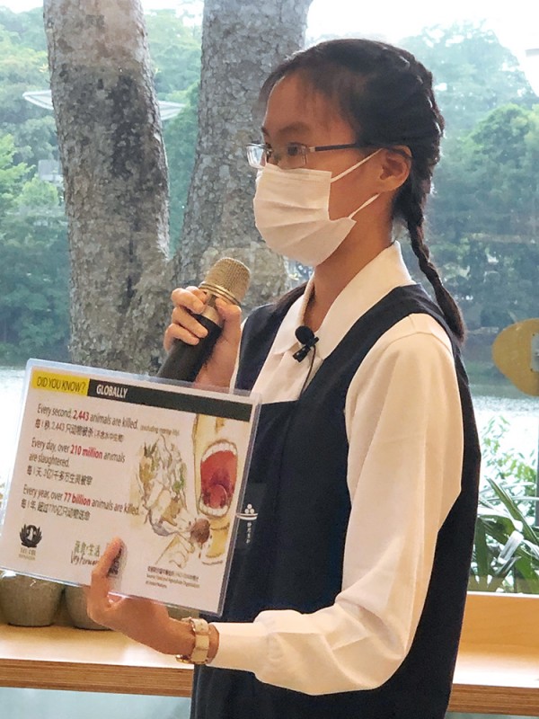 Another mother, Wong Lai Leng came with her daughter. Initially, the daughter was shy and did not dare to express her opinion. However, the young girl gradually became more engaged and involved after a while. Her daughter also understands that being vegetarian can save planet Earth. The mother and daughter have been vegetarians for four years and feel very healthy. Madam Wong said that she became a vegetarian because she loves nature. Moreover, she believes that all beings are equal and one should not harm other animals to satisfy ones’ craving for meat. “Time does not wait for one to become a vegetarian. And do not hold on to a later time. The real fact is that it is not difficult to be a vegetarian, it just requires determination.”
