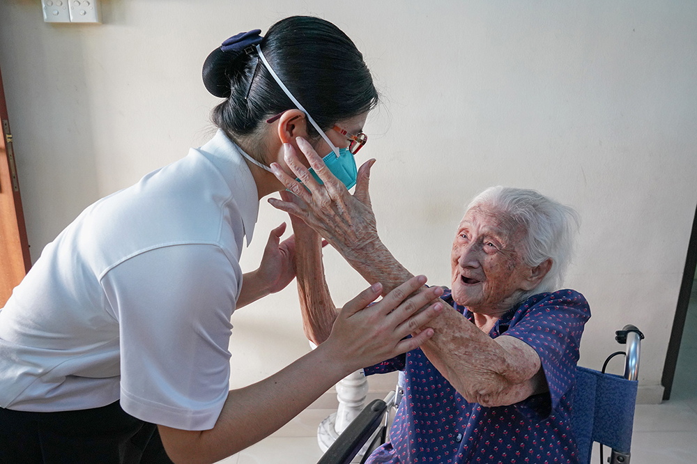 On the surface, it may seem troublesome and time-consuming for the daughter and nurse to persuade the elderly several times just to trim her nails and apply lotion. However, instead of treating the mother as a “troublemaker” or getting the elderly to give in by force, Ngit Wah and Ms Choo combined their knowledge and experience to find different ways to interact with the old lady.