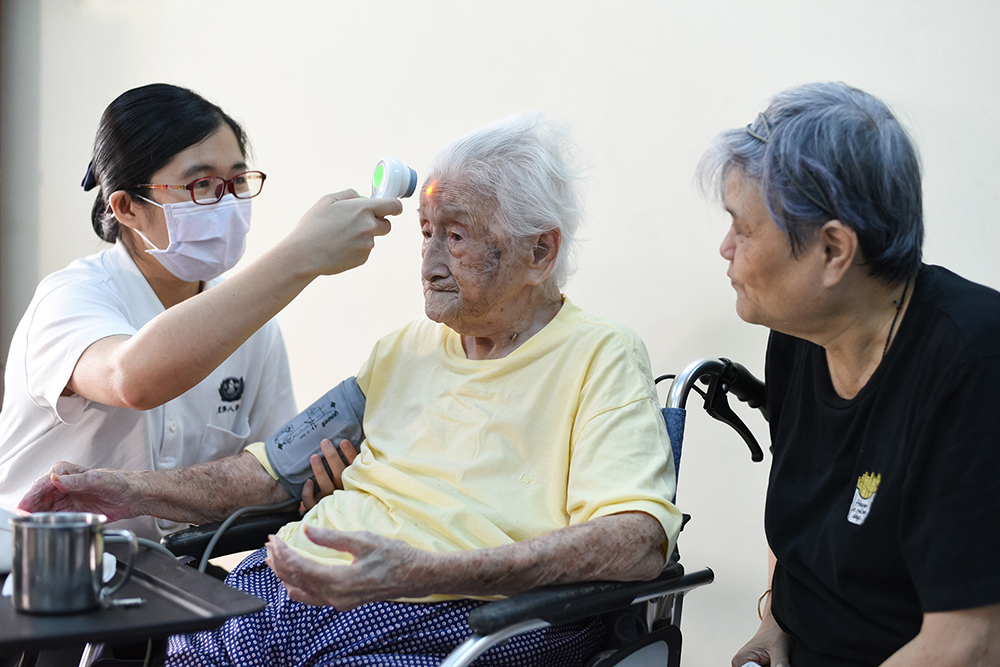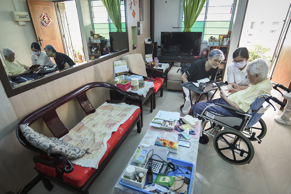 On the day of the interview, we ran into Choo Mei Mei, a home care nurse, who had come to Ngit Wah’s house to check on her mother’s lung inflammation condition.