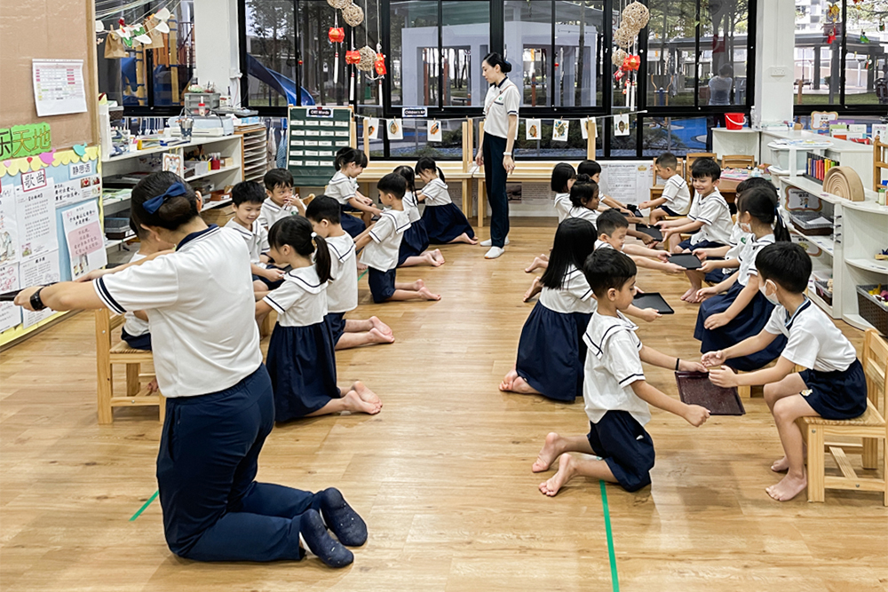 Teachers rehearsing the tea ceremony with the children a few days before the Parents Appreciation Day. (Photo by Wei Yi Yang)