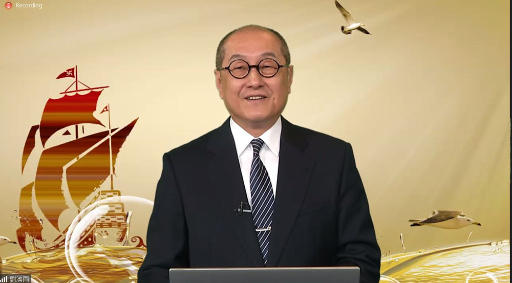 台湾慈济慈善基金会副执行长刘济雨分享不退道心的五个因素:发心如初、心中有法、做得欢喜、一心一志、精进不懈。(荧幕截屏/ 黄思妮)