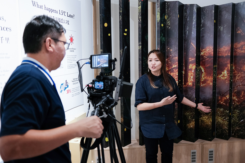新加坡报业控股中文电台台长(UFM100.3,96.3好FM)洪菁云今日义务来为开幕礼协助导览永续生活馆,她参访展馆后表示,“人是非常需要被提醒的”。她认为如果人们愿意走一趟展馆,就会发现在日常生活中有很多小小的举动是我们可以做的,有时候人们可能会认为实施永续是一项庞大的任务,需要做出巨大的生活改变,但实际上很小的行动也能为永续发展做出贡献。