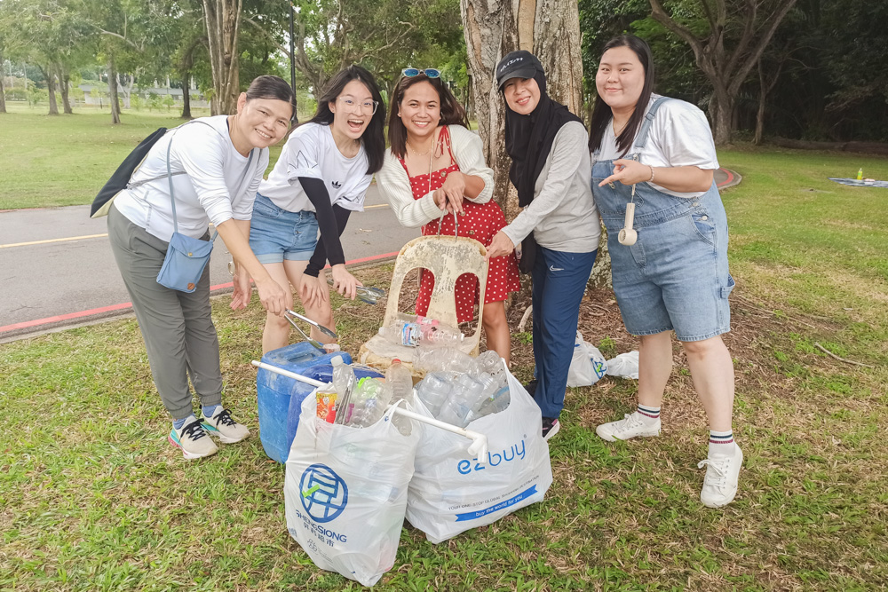 “环保净滩我最行!”老师们在享受乐趣的同时也不忘为环保出力。每个小组都挑战捡拾资源或垃圾,看看谁能累积最多重量。