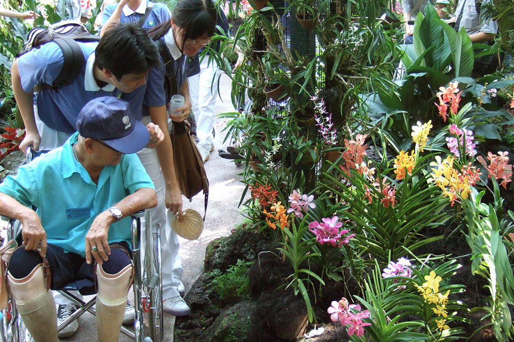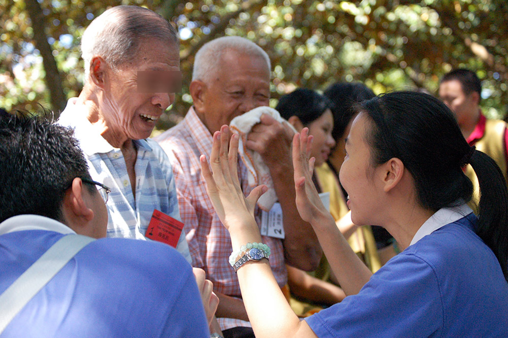 从早期的“喜乐之家”麻疯病院、到后来的李亚妹安老院及萨司歌乐龄之家,藉由病患和年长院友的人生经历,慈青从中体悟生命无常和反思人生意义,体会到课堂上学不到的人生智慧。此外,每月一次于慈济义诊中心值班,慈青协助登记挂号,也用心陪伴前来看诊的阿公阿嫲。